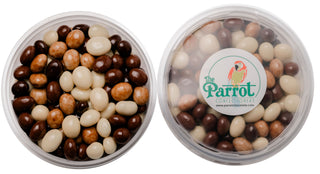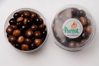 Explore Parrot's gourmet bulk candy collection! Discover decadent Triple-Dipped Espresso Beans, exotic Coconut Curry Cashews, classic Toffee, and fun Birthday Cake Crunch Bites.
